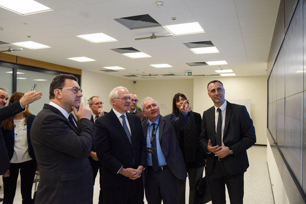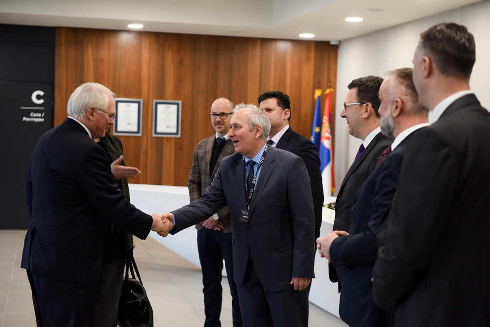 Њ.Е. Кристофер Р. Хил, амбасадор Сједињених Америчких Држава и Небојша Аврамовић, директор корпорације Oracle за Србију посетили су данас Државни дата центар у Крагујевцу, где их је дочекао Милан Латиновић, в.д. директора Канцеларије за ИТ и еУправу, Славиша Антић и Бобан Михаиловић, помоћници директора Канцеларије, као и Данило Савић, директор Data Cloud Technology-а. Њима су овом приликом представљени капацитети Државног дата центра, Модул где ће се налазити Oracle регионални центар а дотакли су се и будућих планова на пољу дигитализације и модернизације јавне управе у Србији, као и ширења капацитета за државни дата центар у Крагујевцу.