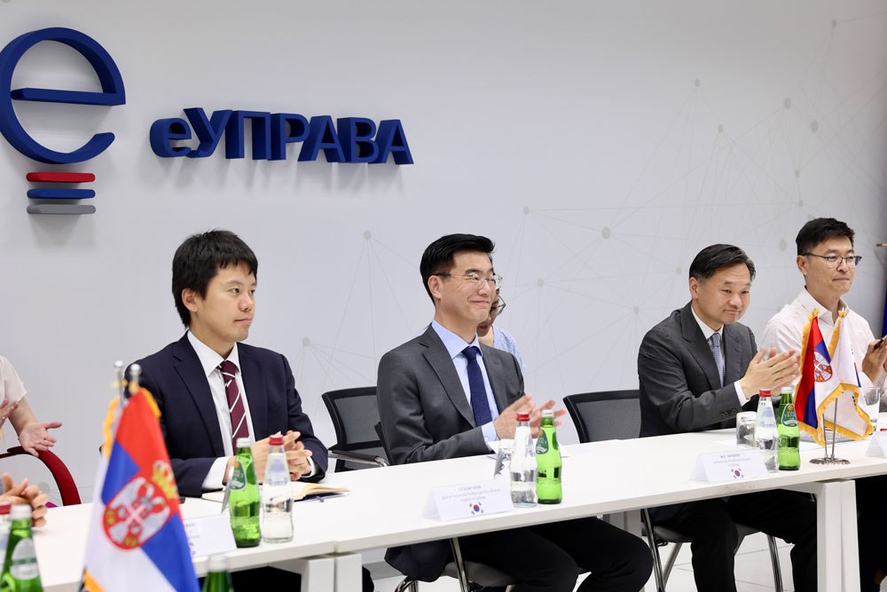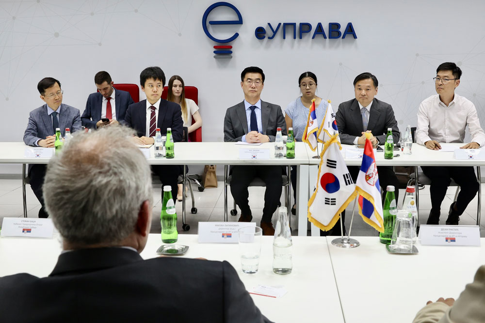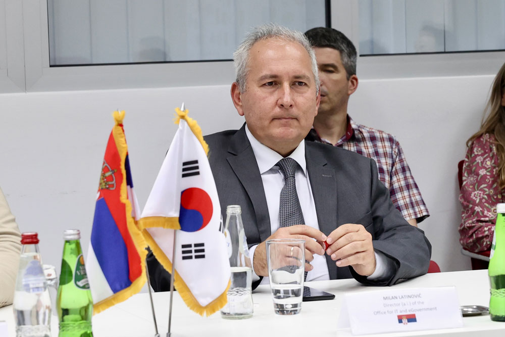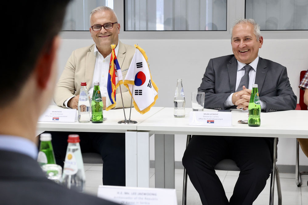 В.д. директора Канцеларије за информационе технологије и електронску управу Милан Латиновић састао се данас са новоизабраним амбасадором Републике Кореје у Србији Њ.Е. Ли Ђеунгом и потпредседником Националне агенције за информационо друштво (NIA) Ли Ђе Хоом.