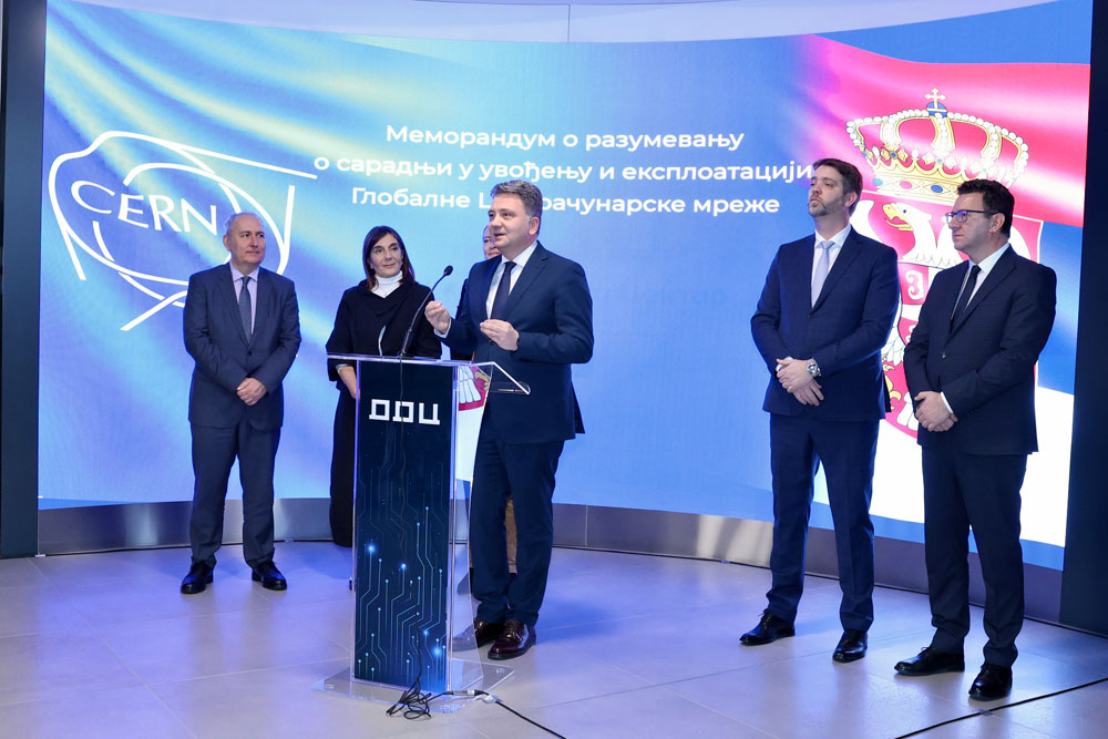 „Потписивањем овог Меморандума Србија постаје део Глобалне рачунарске мреже ЦЕРН-а. Наиме, у Државном дата центру у Крагујевцу ћемо успоставити чвориште намењено за чување, обрађивање и анализу научних података са Великог хадронског сударача (LHC - Large Hadron Collider) у ЦЕРН-у. Србија на овај начин постаје једна од само 7 земаља у Европи и 10. земља на свету, део Глобалне LHC рачунарске мреже, где се обрађују примарни подаци са физичких експеримената у ЦЕРН-у и где се подаци даље чине доступним светској научној заједници. То је уједно и прилика да се у оквиру научне заједнице у Србији развију и профилишу стручњаци који ће радити са подацима нуклеарних истраживања и имати могућност да сарађују са око 5.500 научника из 240 института из 54 земље широм света“, рекао је министар Јовановић и подсетио да Државни дата центар у Крагујевцу поседује сертификат, према стандарду ЕN50600 за испуњавање највишег нивоа поузданости, сигурности и ефикасности чувања опреме и података – сертификат за класу 4. Након што су донели одлуку да у Крагујевцу своју опрему и податке на комерцијалној основи чувају највећи светски ИТ гиганти попут Oracle, IBM и Хуавеи, од данас и ЦЕРН постаје корисник Државног дата центра - својеврсне иконе дигитализације у Србији.